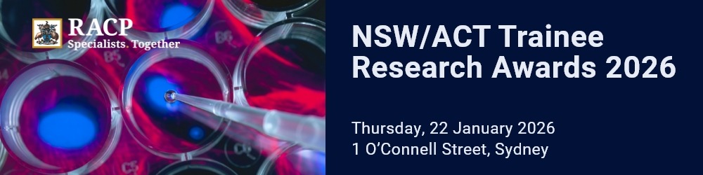 Welcome to the registration site for the New South Wales and Australian Capital Territory (NSW | ACT) Trainees Research Awards, to be held on Thursday, 22 January 2026 from 6pm to 8pm AEDT.